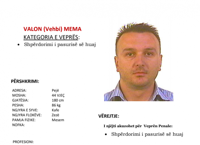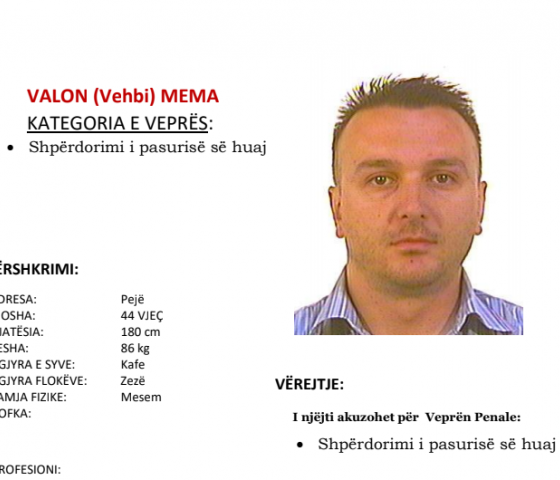 Policia kërkon ndihmë nga qytetarët për arrestimin e Valon Mema nga Peja