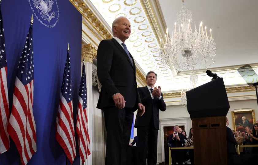 Një javë përpara marrjes së detyrës nga Presidenti i zgjedhur Donald Trump, Presidenti Biden iu drejtua diplomatëve amerikanë në Departamentin e Shtetit dhe vlerësoi lart mbështetjen e administratës së tij për Ukrainën dhe për luftërat e Izraelit në Lindjen e Mesme.