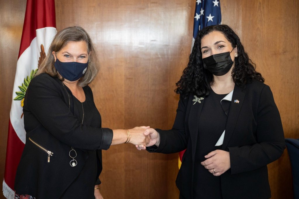 Presidentja e Republikës së Kosovës, Vjosa Osmani, gjatë qëndrimit në Uashington ka pasur një takim mjaft produktiv me Nënsekretaren e Shtetit të Shteteve të Bashkuara, Victoria Nuland. Në takim u riafirmua përkushtimi i vazhdueshëm i dy vendeve për këtë partneritet të fortë, si dhe angazhimi i palëkundur ndaj vlerave të përbashkëta. Presidentja Osmani tha se Kosova është ndër vendet më demokratike në botë, një burim i vërtetë shprese në rajon dhe më gjerë, si dhe një histori e vërtetë suksesi e politikës së jashtme të SHBA-vë. Ajo tha se Kosova është një shëmbëlltyrë e vlerave amerikane.