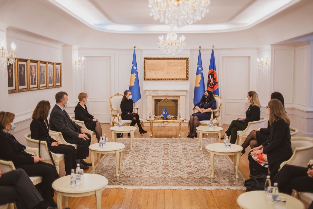 Presidentja Vjosa Osmani gjatë një takimi me Koordinatoren për Zhvillim të OKB-së, Ulrika Richardson dhe udhëheqësit e të gjitha agjencive të Kombeve të Bashkuara që veprojnë në Republikën e Kosovës, tha se prioriteti kryesor për Kosovën tani është sigurimi i vaksinës.