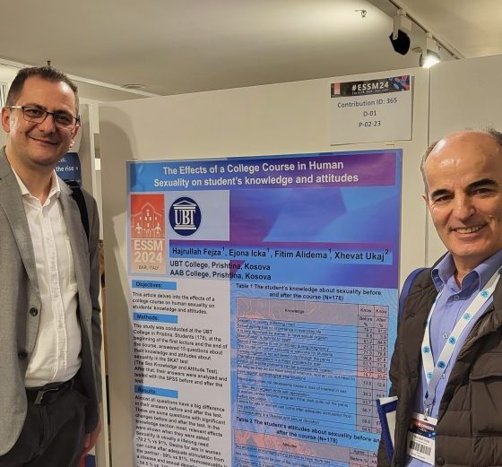 Në këtë ngjarje prestigjioze ndërkombëtare, profesorët nga UBT prezantuan studimin e tyre me titullin: “The Effects of College Course in Human Sexuality on students knowledge and attitudes”.