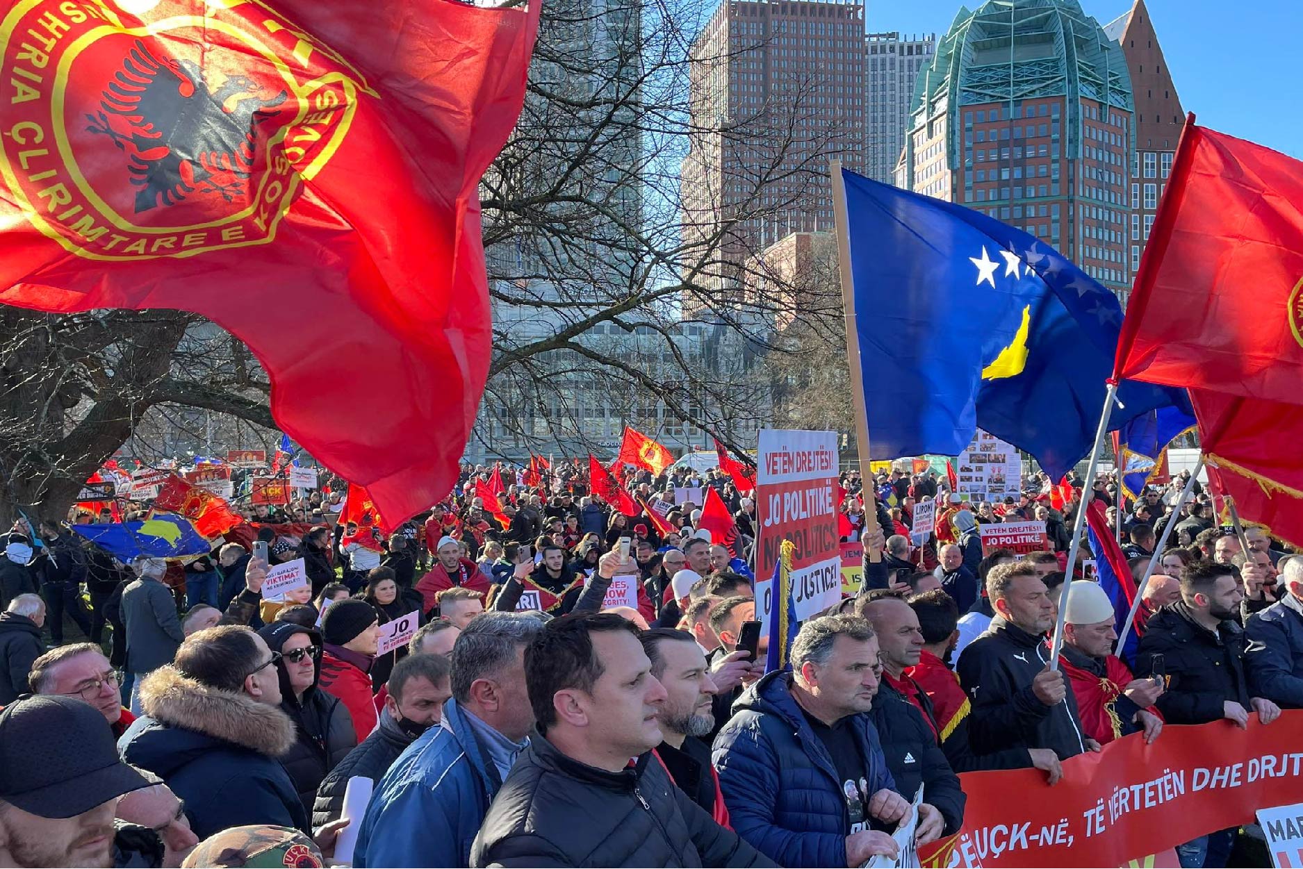 Betim GashiNë Hagë, ku sot nisi procesi gjyqësor ndaj ish-krerëve të Ushtrisë Çlirimtare të Kosovës, Hashim Thaçi, Kadri Veseli, Jakup Krasniqi dhe Rexhep Selimi, po mbahet protestë paqësore në mbështetje të tyre.
