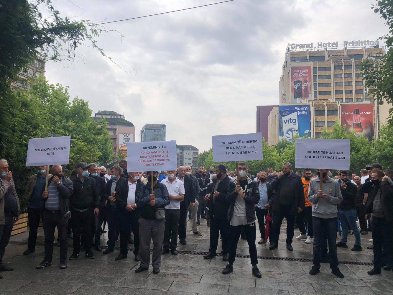 Sindikalistët kanë protestuar fillimisht para objektit të KEK-ut në heshtje përmes pankartave me mbishkrime si “Nuk lejomë të shitemi tutje”, “Ne duam të kthehemi, KEK-u ka interes pse nuk jemi aty”, “Ne jemi të huazuar dhe jo të privatizuar”, “Kryeministër ndalo padrejtësitë ndaj punëtorëve të shërbimit të sigurimit fizik të KEK-ut”.