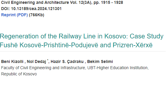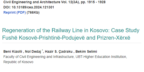 Publikohet studimi shkencor i profesorëve të UBT-së në perspektivën e ‘Rigjenerimi i Linjës Hekurudhore në Kosovë’