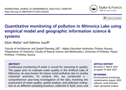 Publikohet studimi shkencor i profesorit të UBT-së me temën “Monitorimi i Ndotjes në Liqenin e Mitrovicës dhe Strategjitë për Menaxhimin Mjedisor”
