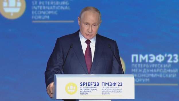 UBT newsPushtimi rus i Ukrainës ka çuar tashmë në “demilitarizimin” e Ukrainës, pohon Putin ndërsa vazhdon fjalimin e tij në Shën Petersburg – një objektiv i quajtur nga Moska në fillim të luftës.