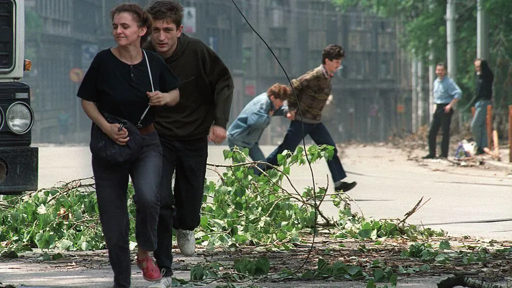 Civilët rrezikuan jetën e tyre për të kaluar bulevardin kryesor të Sarajevës gjatë luftës në Bosnjë./ 📷: AP/Jerome Delay/BBC