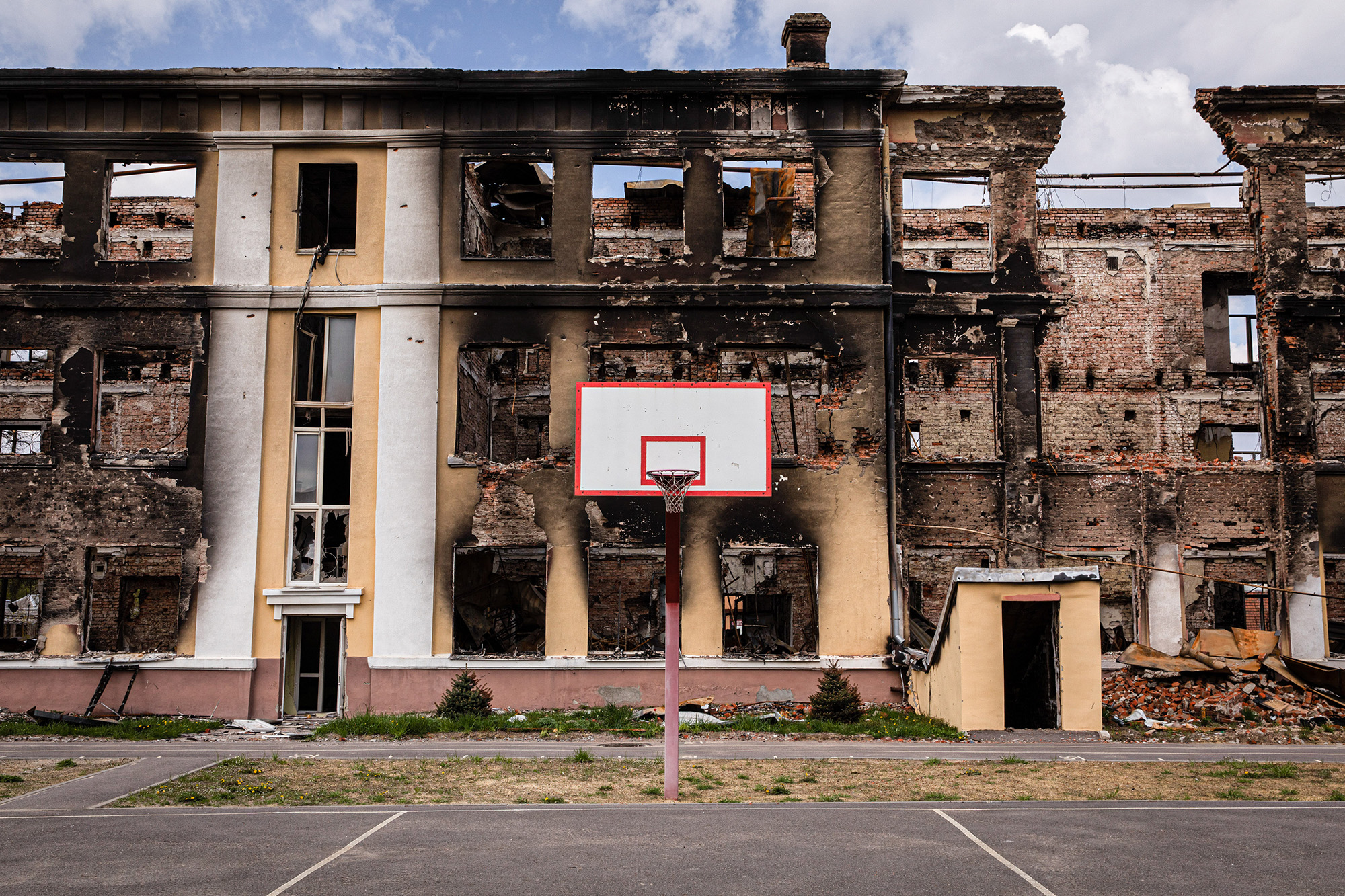 Ndër shkollat që janë dëmtuar ose shkatërruar nga bombardimet është “Shkolla 36” në Mariupol.