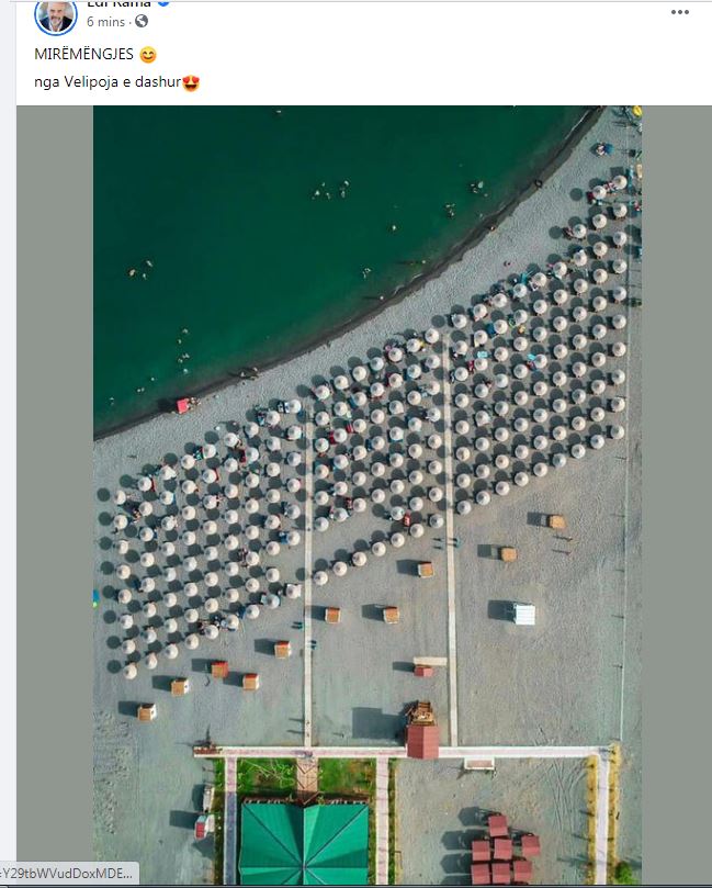 Por pavarësisht kësaj ngjarje tejet të rëndë, kryeministri Edi Rama nisi ditën me një fotografi të plazhit të Velipojës.