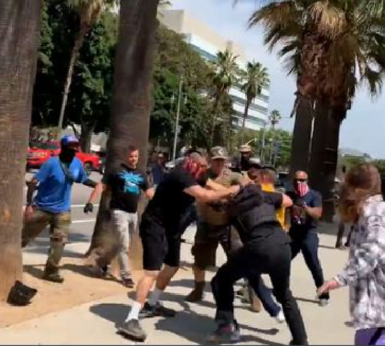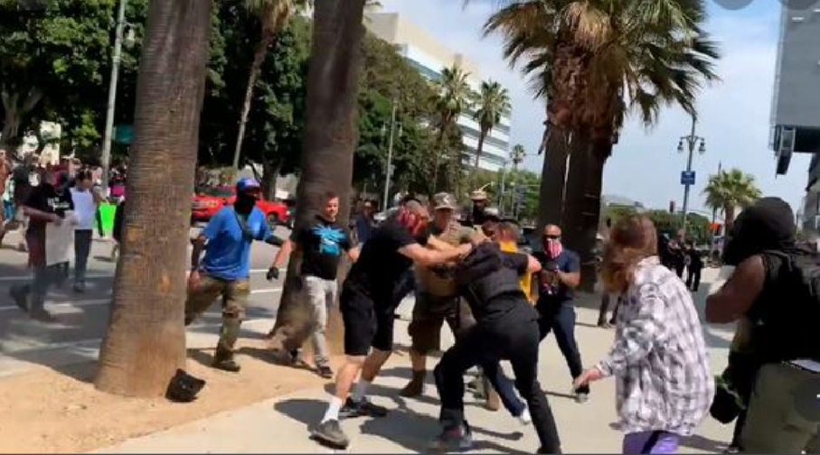 Një grup kundër-protestuesish ishin mbledhur pranë tyre dhe pak më vonë një përleshje shpërtheu mes dy palëve, raportonte Los Angles Times, pa qartësuar se cila e nisi sherrin.