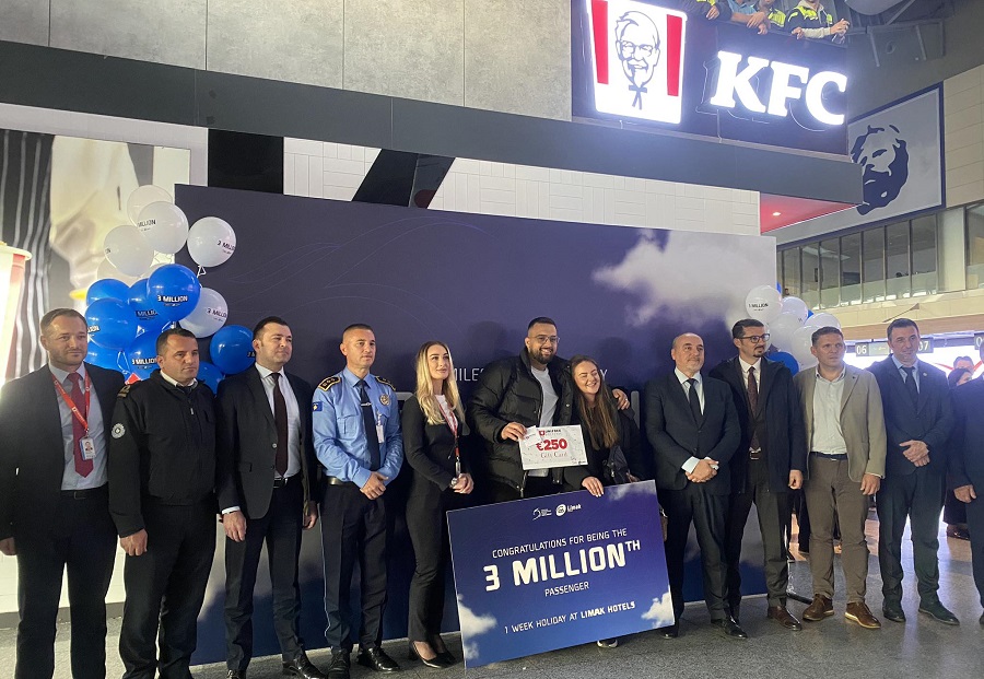 Ardit Alaj nga Deçani, i cili po udhëtonte për Gjermani, është udhëtari i 3 miliontë që ka udhëtuar përmes Aeroportit Ndërkombëtarë “Adem Jashari” në Prishtinë. Alaj me bashkëshorten e tij, kanë përfituar një udhëtim një javor në njërin nga hotelet e Rimakut në Turqi, dhe një befasi nga uni-free (freeshop).