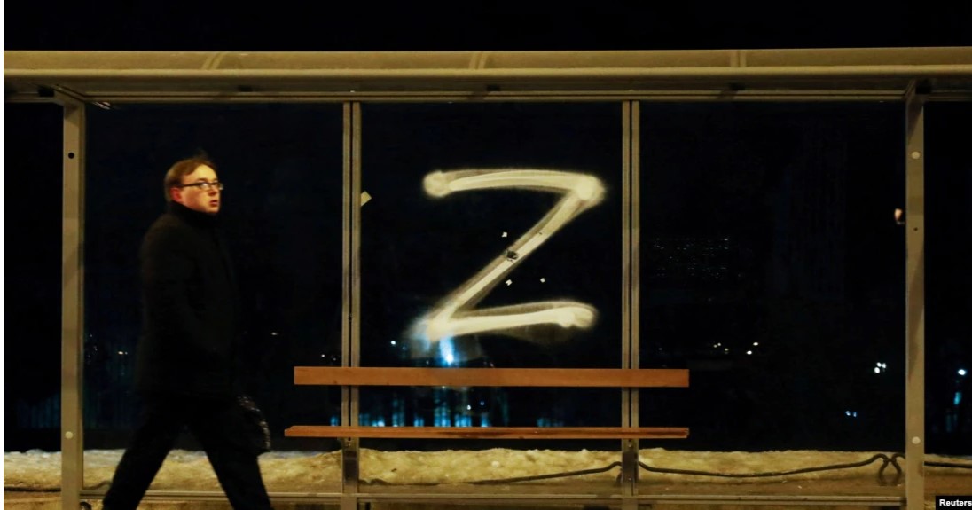 Që prej se Rusia nisi pushtimin e Ukrainës, shkronja “Z” është parë në tanke e uniforma, dhe po ashtu është shfaqur e vizatuar në mure, ndërtesa e bluza, teksa ky simbol po përdoret për të shprehur mbështetjen ndaj pushtimit të Ukrainës nga presidentit rus, Vladimir Putin.