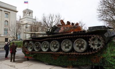 Tanku i shkatërruar në ekspozitë jashtë ambasadës ruse në Berlin