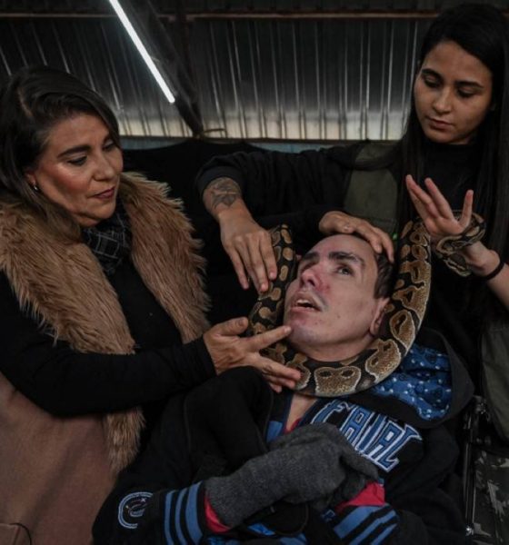 “Emri i tij është Gold. Ai është i ftohtë. Ai ha minj”, i thotë pacienti i quajtur Gomes terapistes së tij në një qendër trajtimi në Sao Paulo, duke mbajtur butësisht gjarpërin e madh ndërsa ai rrëshqet rreth tij.