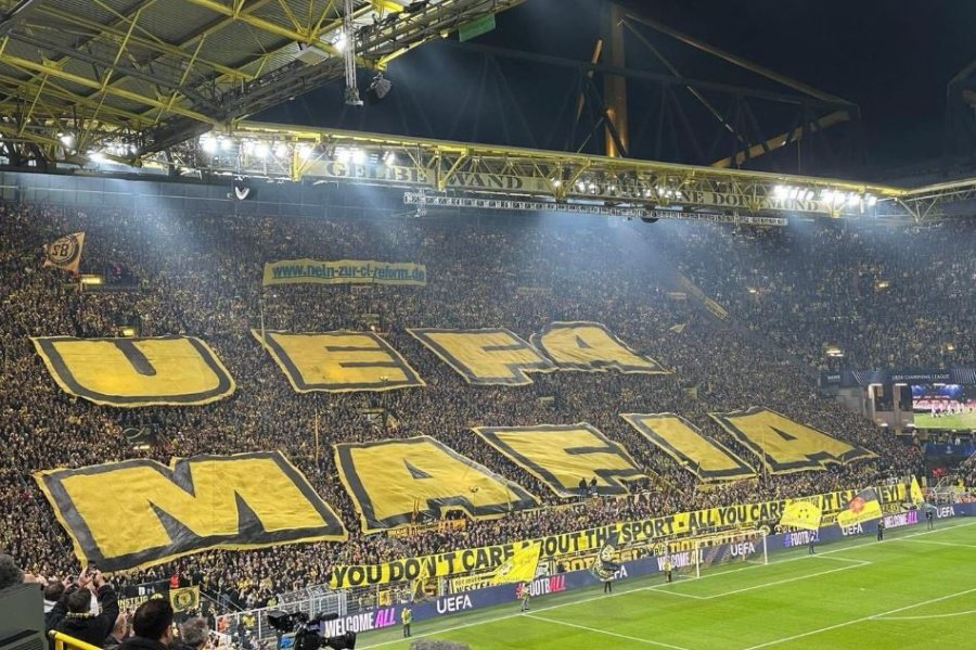 Tifozët e Borusia Dortmundit kanë shprehur revoltën e tyre ndaj reformës së Ligës së Kampionëve me një protestë të fortë para ndeshjes ndaj Celtic, e cila është e vlefshme për këtë garë prestigjioze. Para fillimit të takimit, ata shpalosën një banner gjigant me mbishkrimin: “UEFA Mafia – Nuk ju intereson sporti – gjithçka që ju intereson janë paratë!”