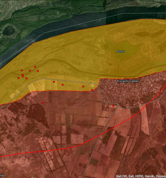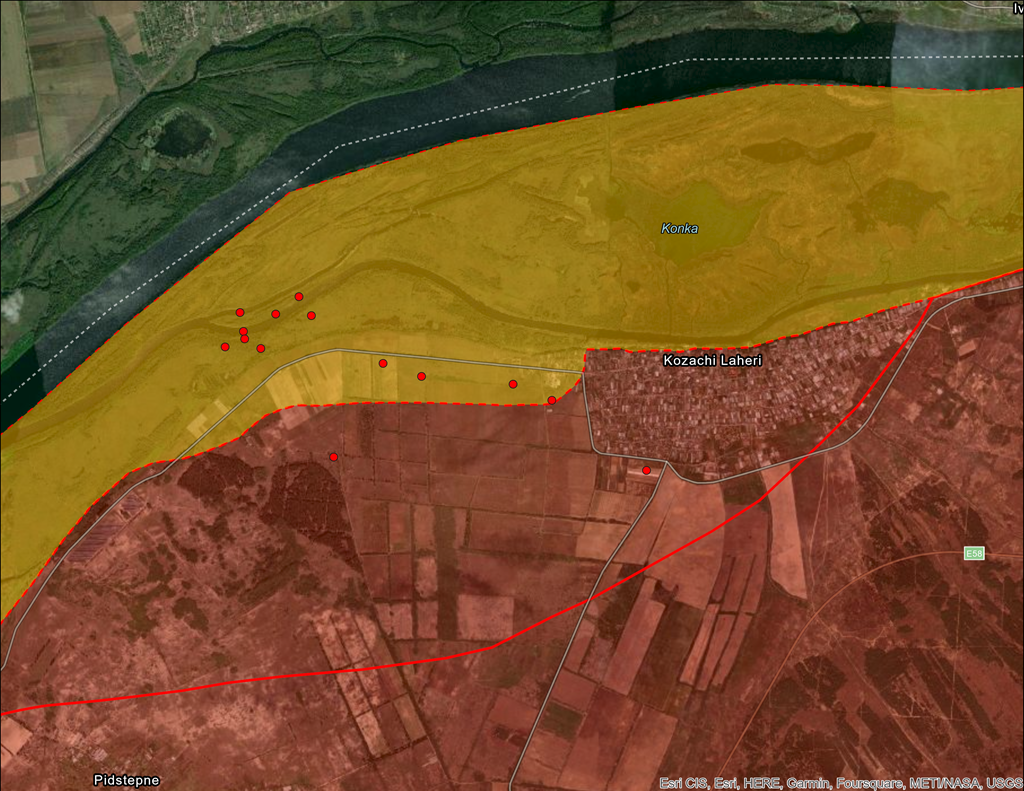 Dje, blogerët ushtarakë rusë thanë se forcat ukrainase zbarkuan deri në shtatë varka, secila me rreth gjashtë deri në shtatë persona, në vendbanimin Kozachi Laheri dhe depërtuan në linjat mbrojtëse.