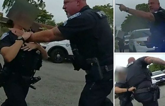 Sipas pamjeve, Pullease e kapi oficeren për fyti dhe e shtyu drejt një makine tjetër patrullimi.