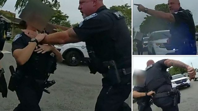 Betim GashiNjë oficer policie në Florida është nën hetim pasi ai u filmua duke kapur nga fyti një police femër kur ajo u përpoq ta largonte atë nga një i dyshuar i prangosur.