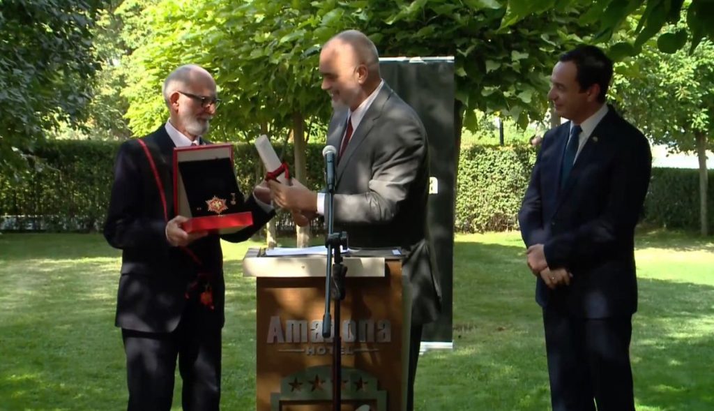 Kryeministri Edi Rama ka nderuar Rexhep Qosjen me dekoratën “Kordoni i Madh me Yll i Medaljes” gjatë vizitës së tij në Kosovë. Rama e cilësoi Qosen si “zotni burrë” duke thënë se shpreh mirënjohjen për të pasi është shembull i gjurmimit të së mirës, transmeton TCH.